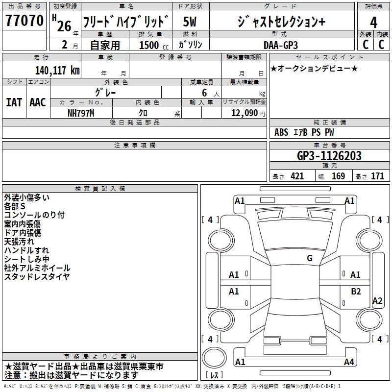HONDA FREED HYBRID - лот 77070