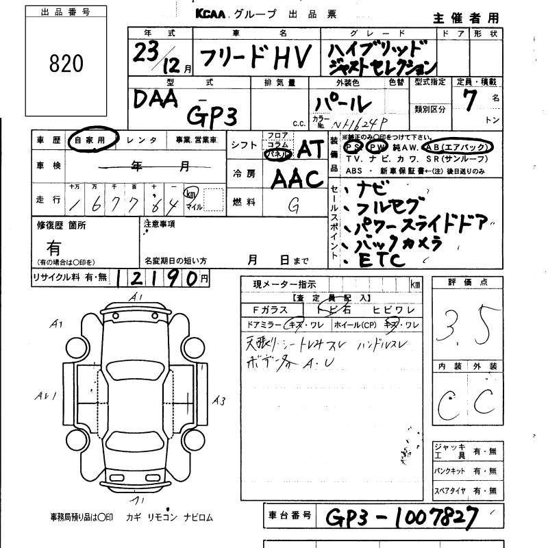 HONDA FREED HYBRID - лот 820
