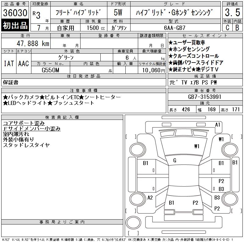 HONDA FREED HYBRID - лот 36030