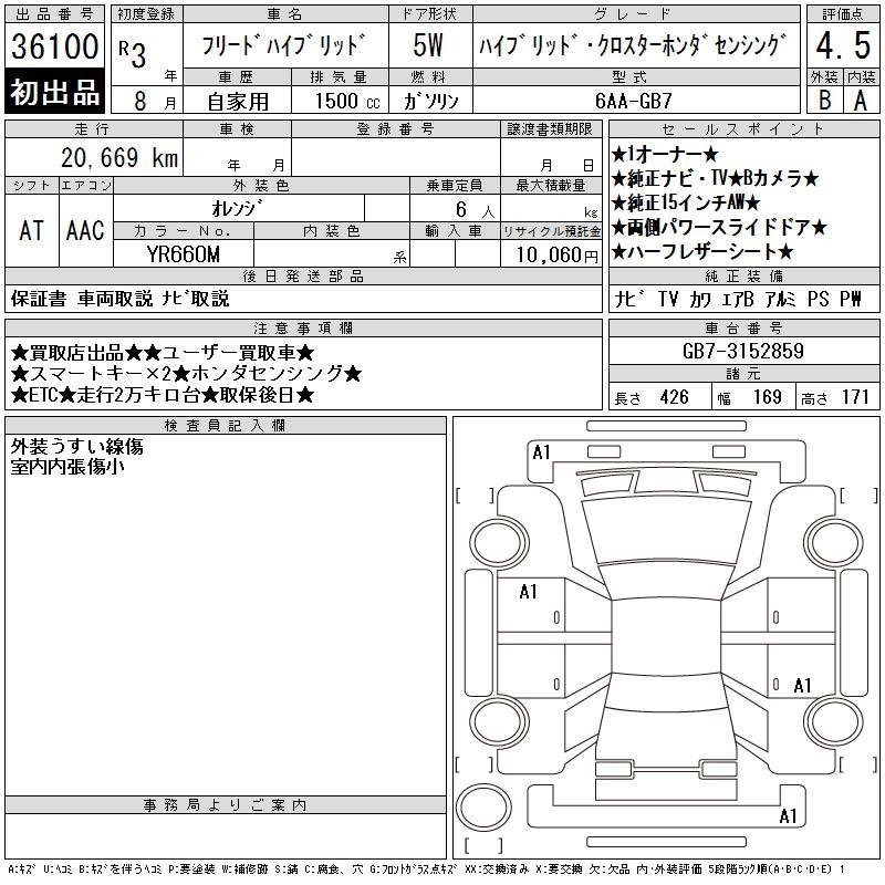 HONDA FREED HYBRID - лот 36100