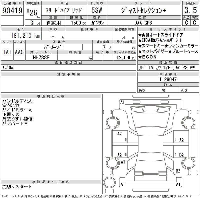 HONDA FREED HYBRID - лот 90419