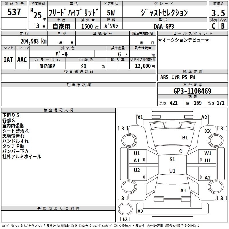 HONDA FREED HYBRID - лот 537