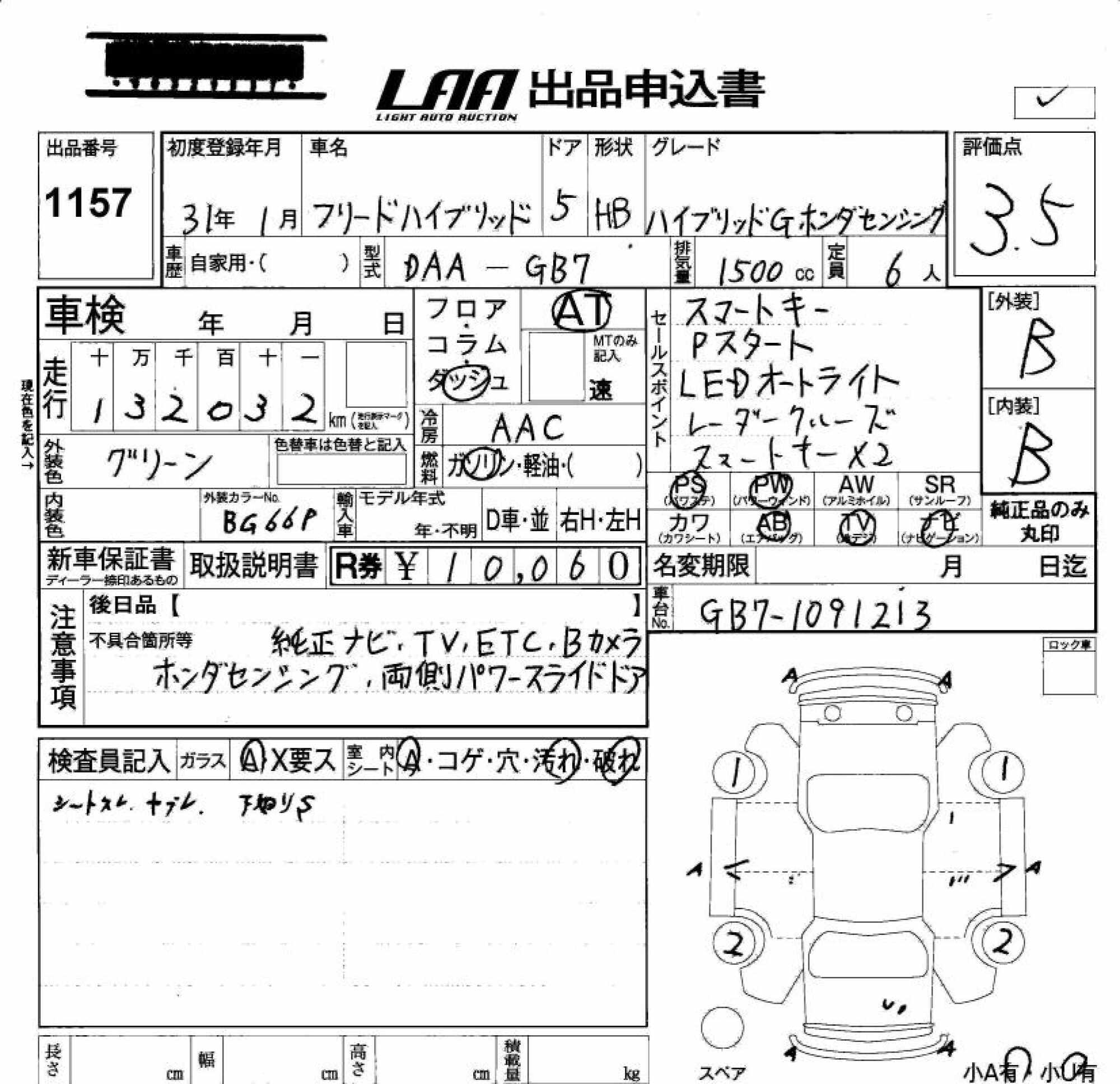 HONDA FREED HYBRID - лот 1157