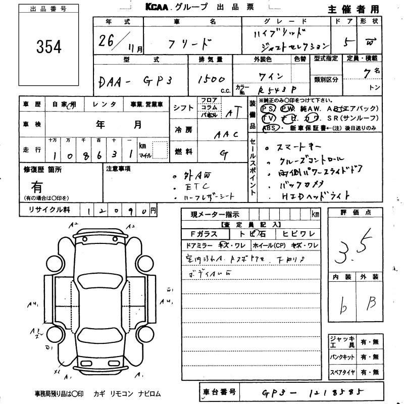 HONDA FREED HYBRID - лот 354