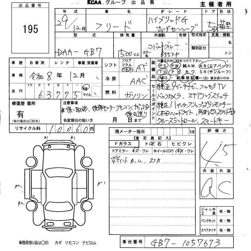 HONDA FREED HYBRID - лот 195