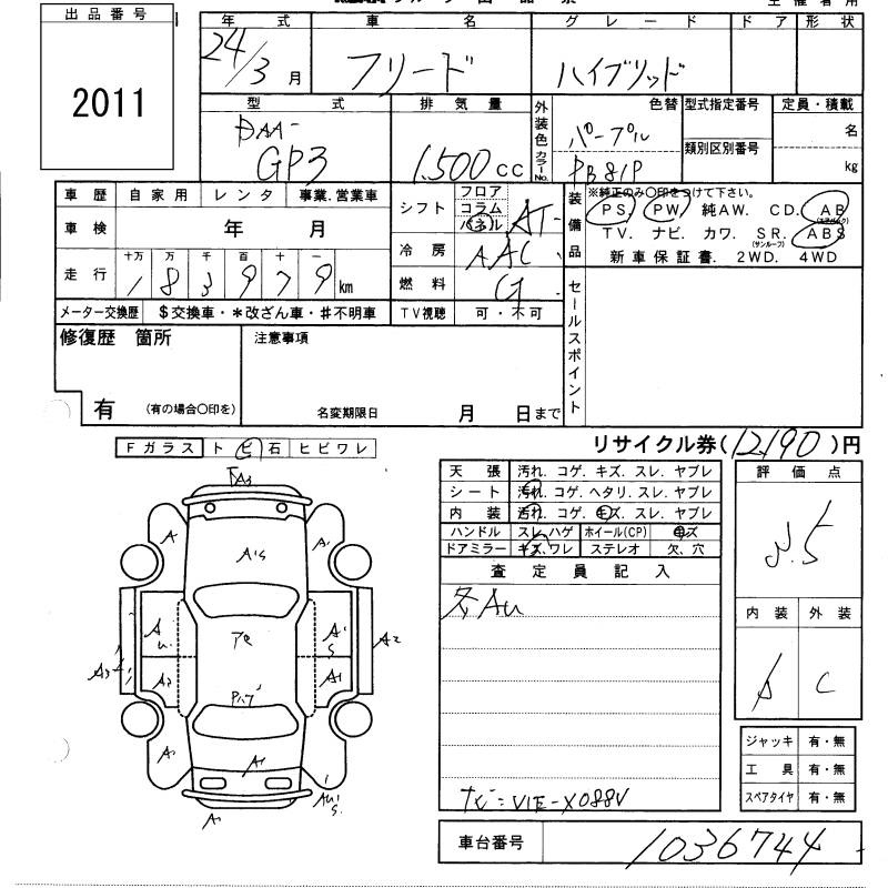HONDA FREED HYBRID - лот 2011