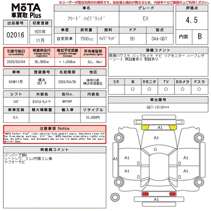 HONDA FREED HYBRID - лот 2016