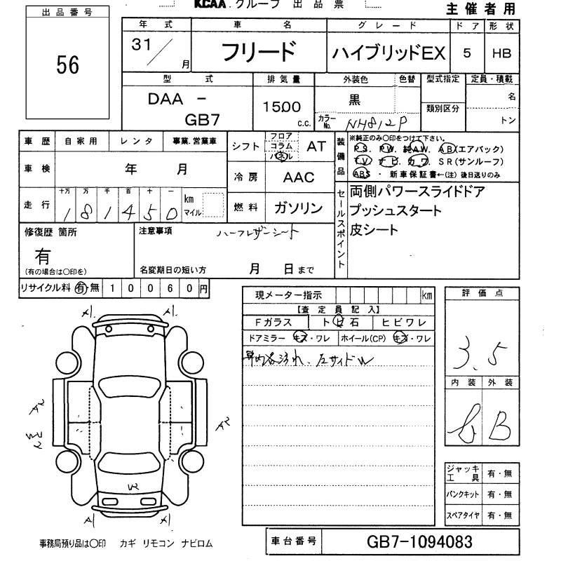 HONDA FREED HYBRID - лот 56