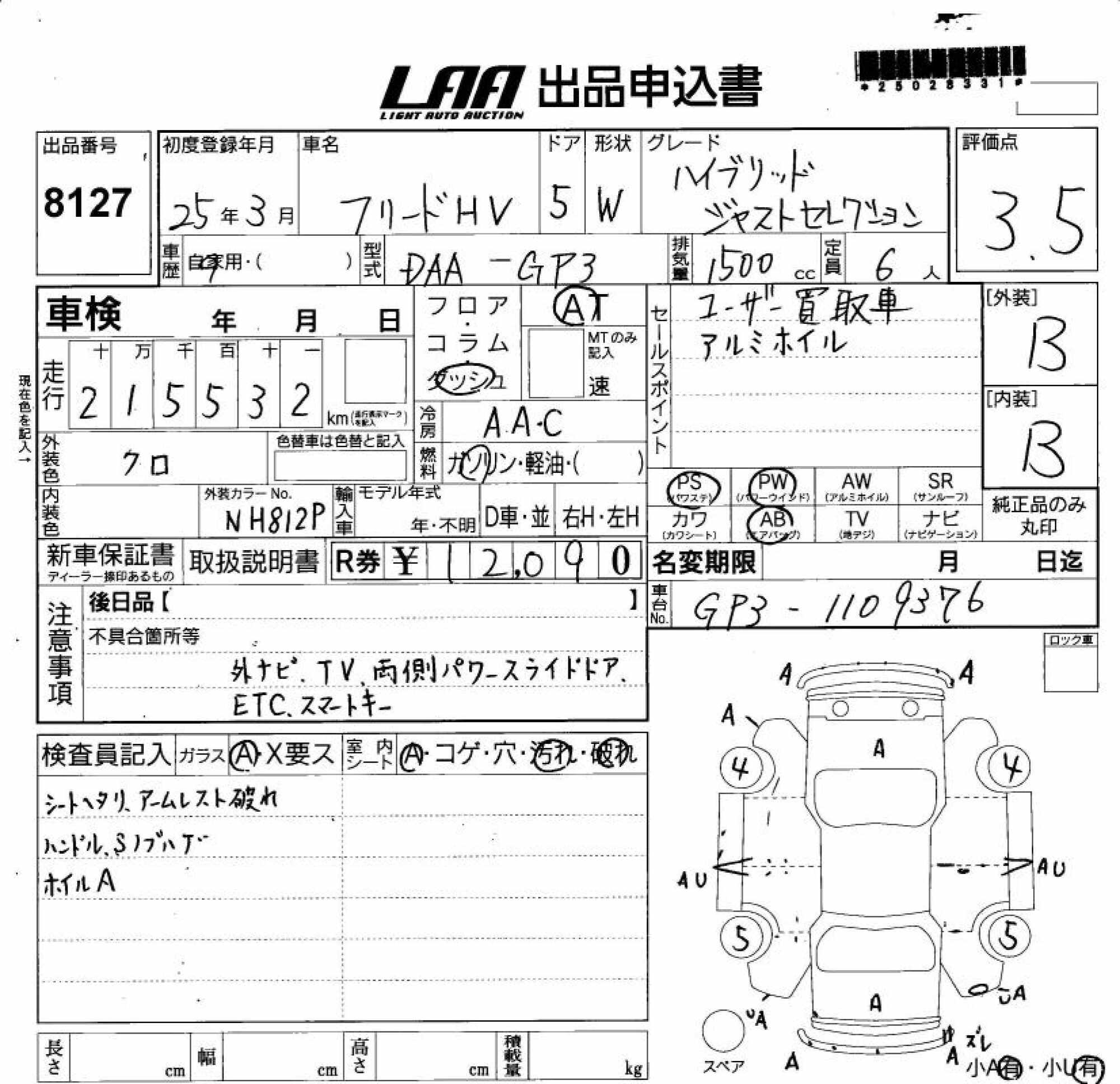 Все аукционы HONDA FREED HYBRID