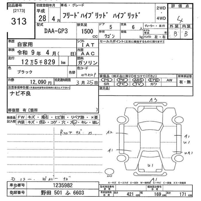 HONDA FREED HYBRID - лот 313