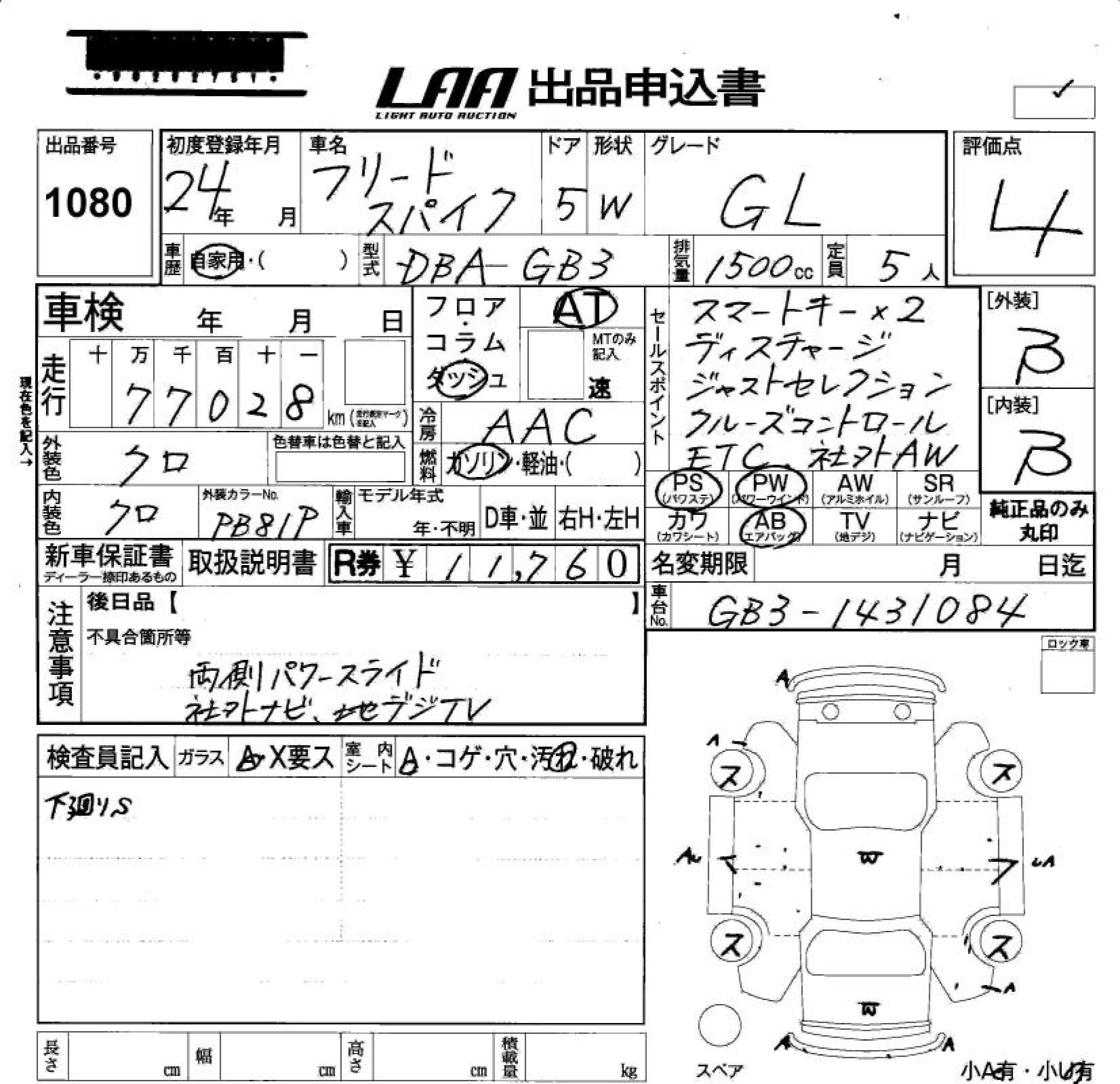 HONDA FREED SPIKE - лот 1080