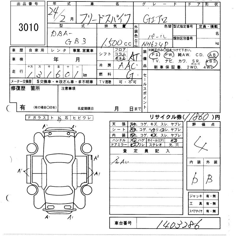 HONDA FREED SPIKE - лот 3010