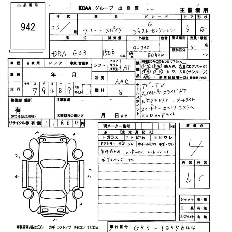 HONDA FREED SPIKE - лот 942