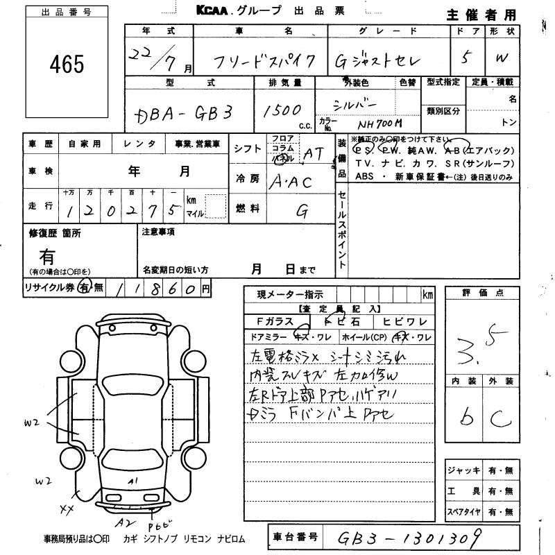 HONDA FREED SPIKE - лот 465
