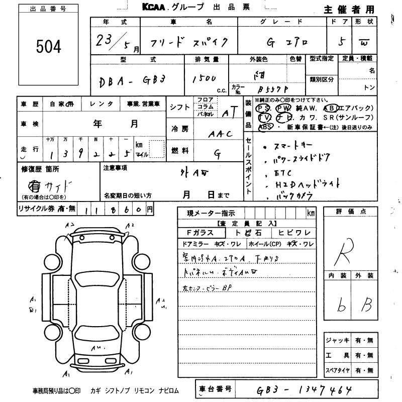 HONDA FREED SPIKE - лот 504