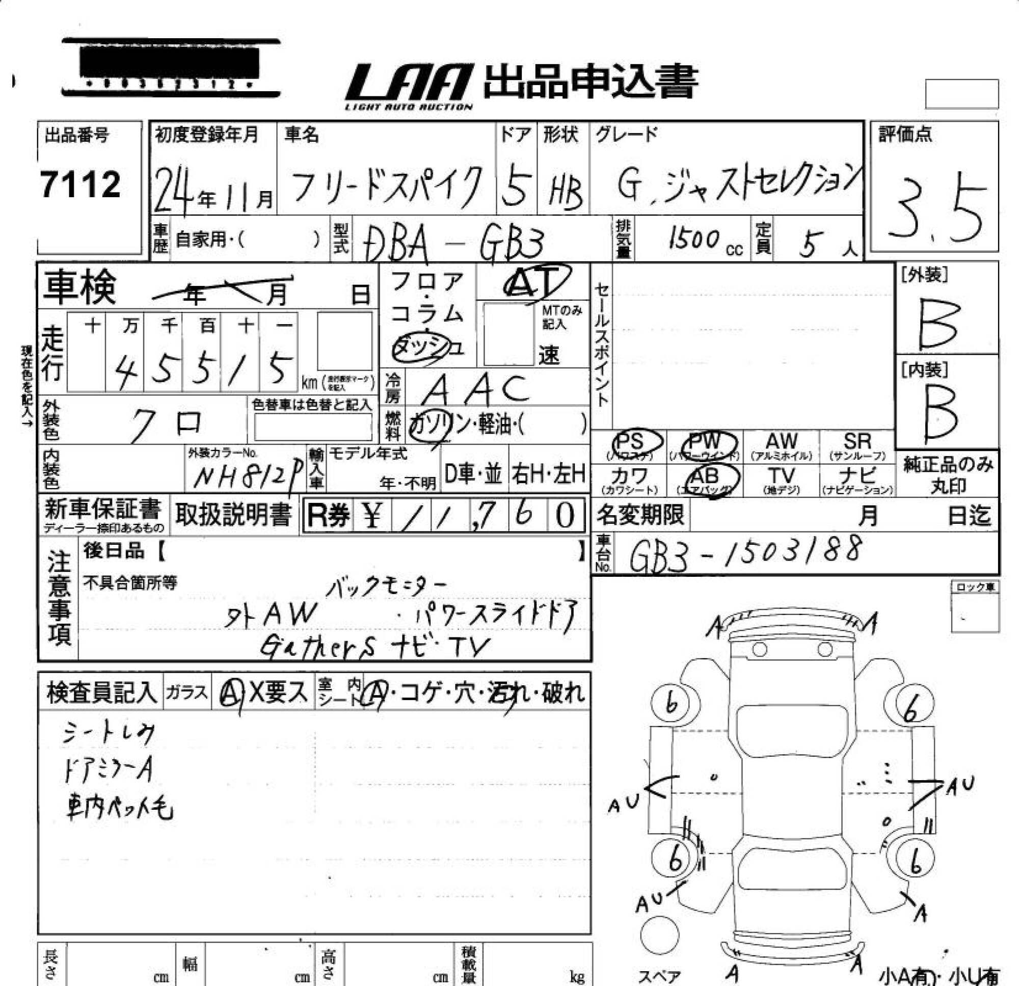 HONDA FREED SPIKE - лот 7112