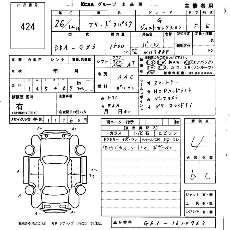 HONDA FREED SPIKE - лот 424
