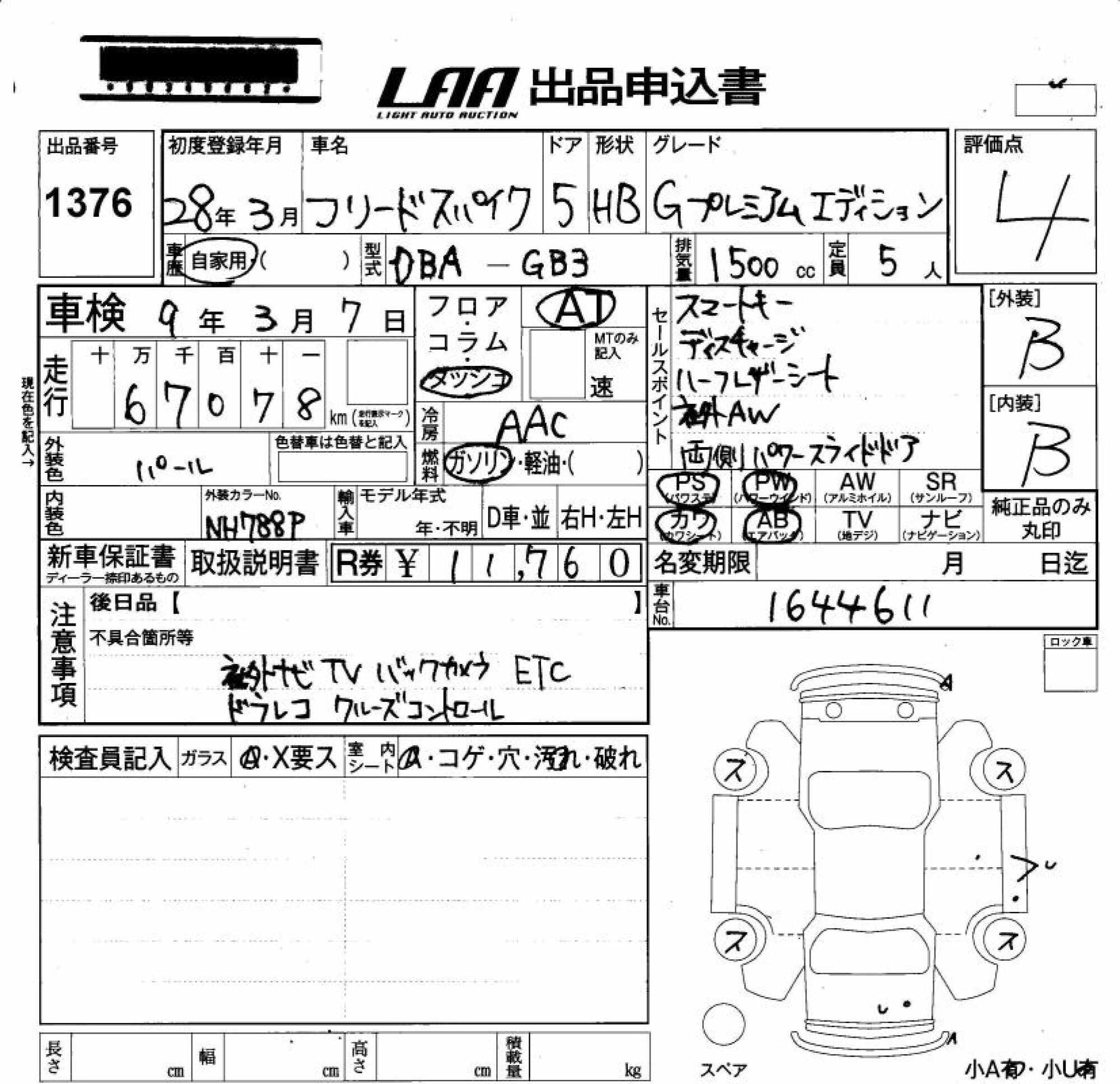 HONDA FREED SPIKE - лот 1376