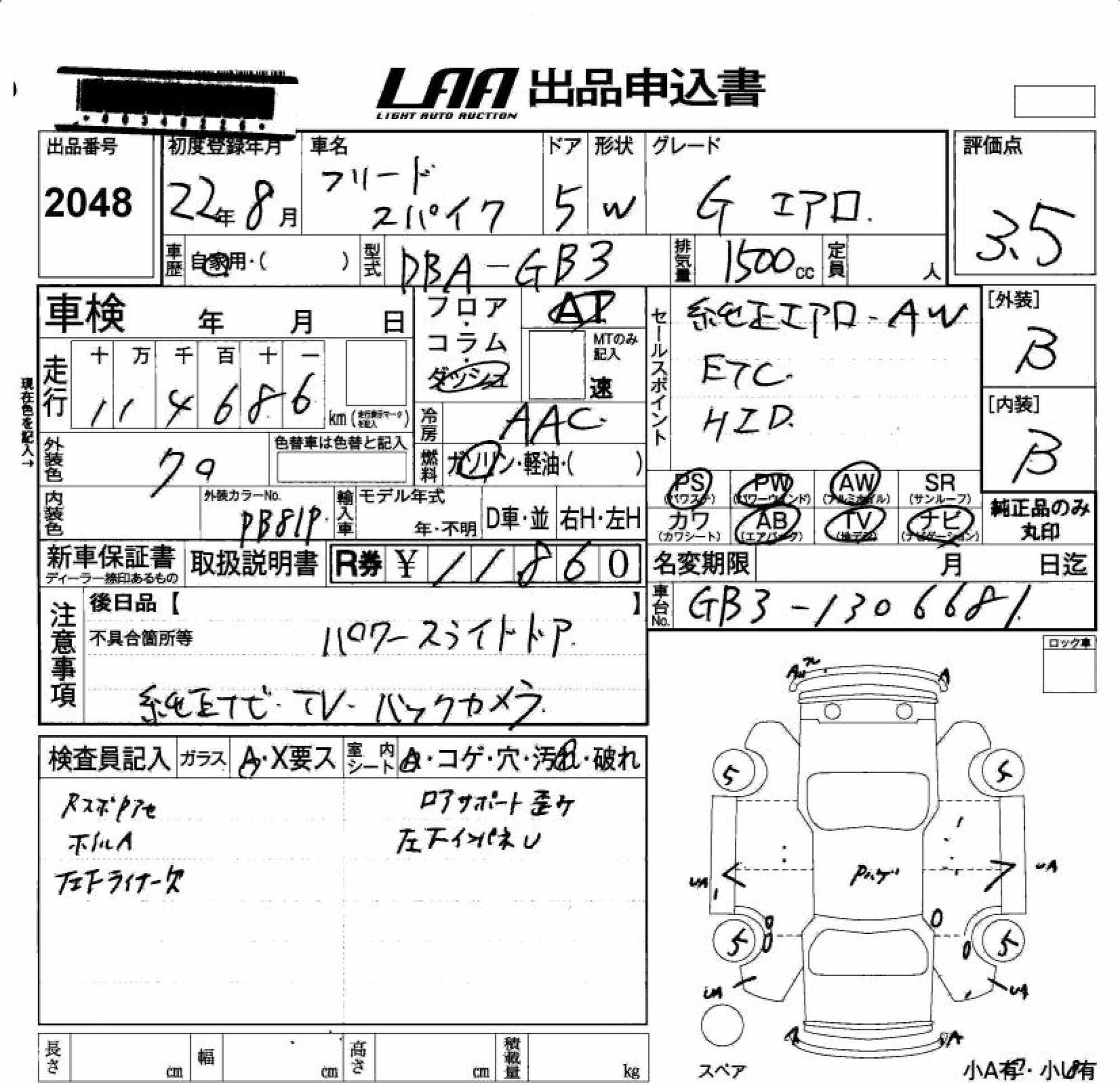 HONDA FREED SPIKE - лот 2048