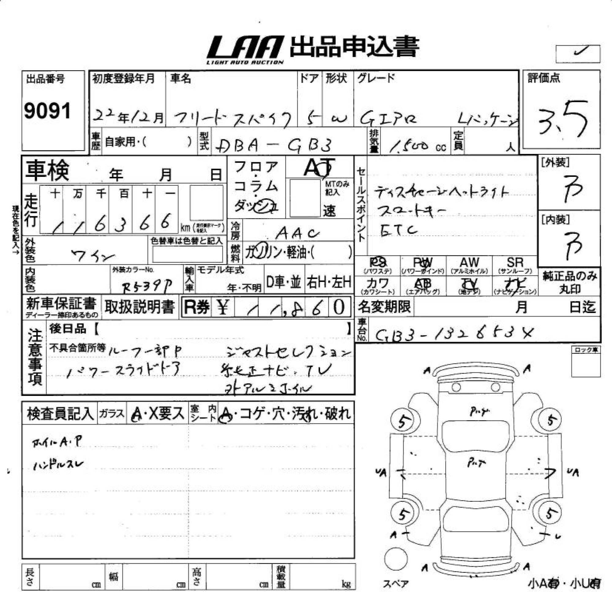 HONDA FREED SPIKE - лот 9091