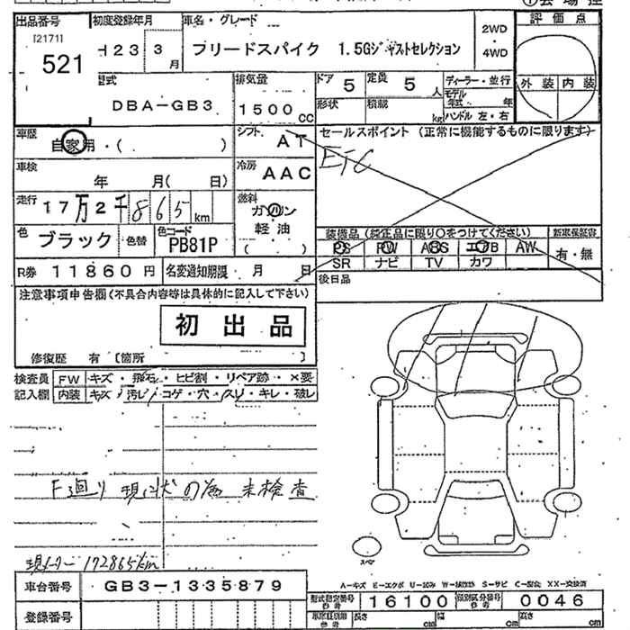 HONDA FREED SPIKE - лот 521