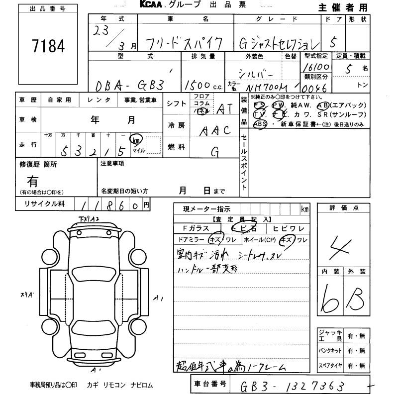 HONDA FREED SPIKE - лот 7184