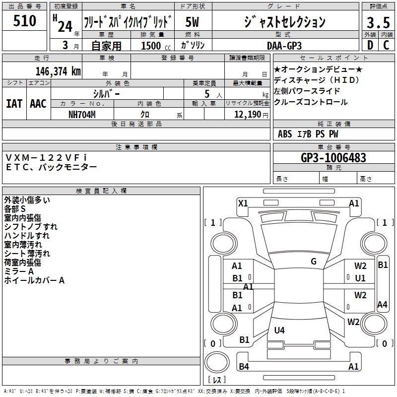 HONDA FREED SPIKE HYBRID - лот 510