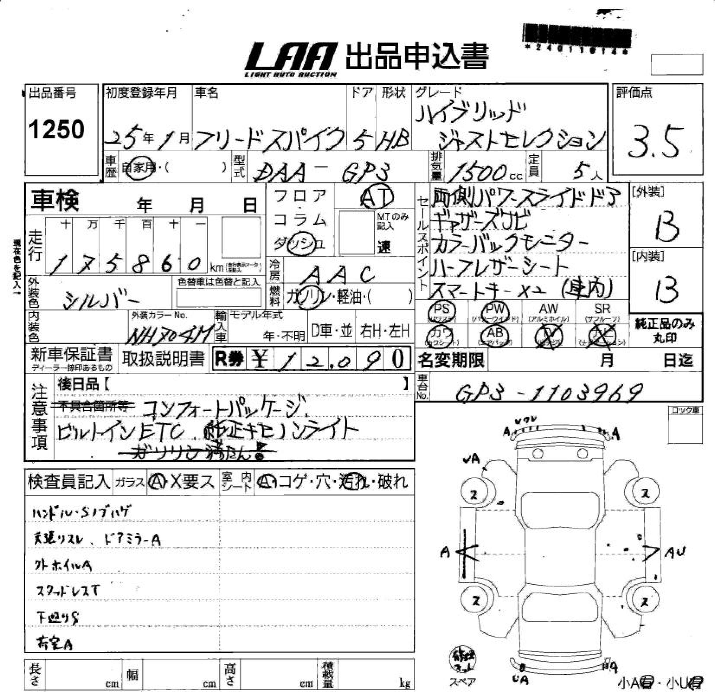 HONDA FREED SPIKE HYBRID - лот 1250