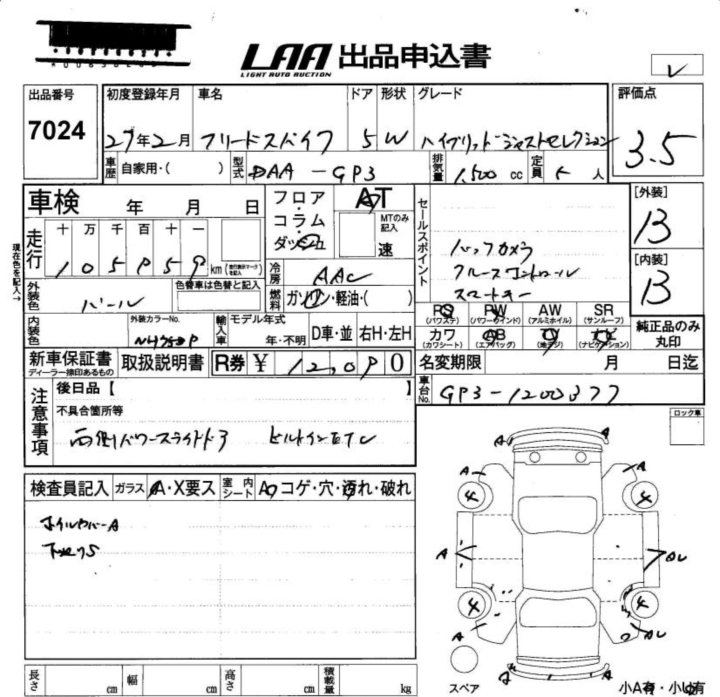 Все аукционы HONDA FREED SPIKE HYBRID