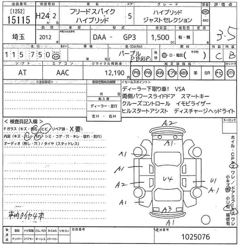 HONDA FREED SPIKE HYBRID - лот 15115