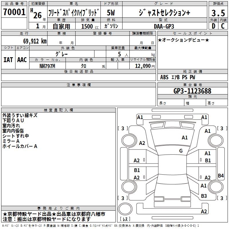 HONDA FREED SPIKE HYBRID - лот 70001