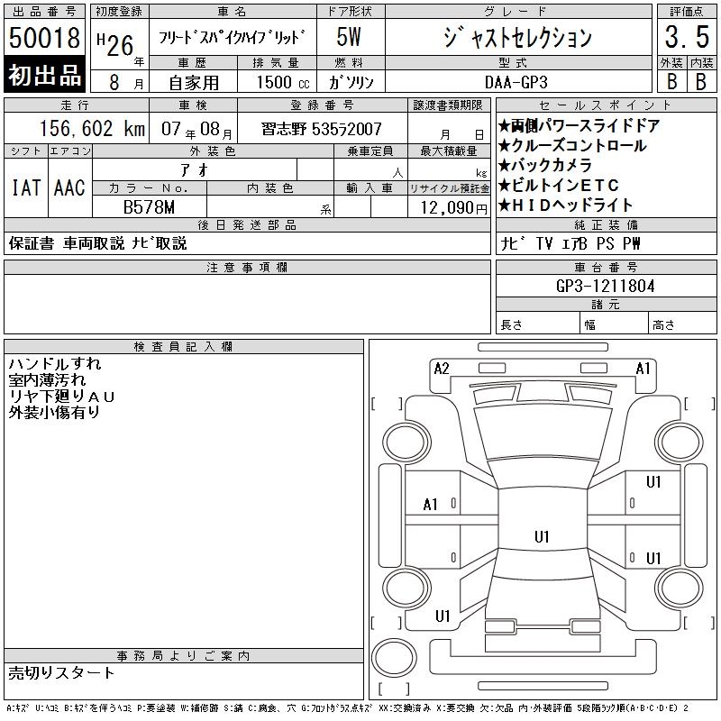 Все аукционы HONDA FREED SPIKE HYBRID