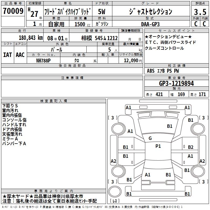 Все аукционы HONDA FREED SPIKE HYBRID