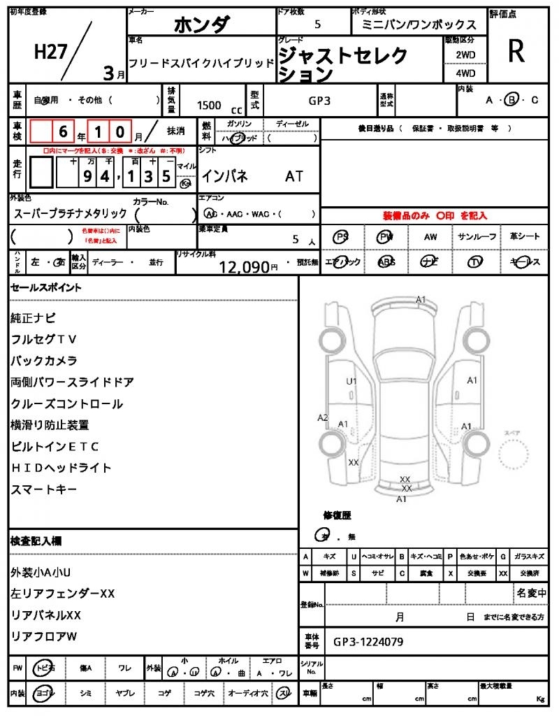 HONDA FREED SPIKE HYBRID, 2015