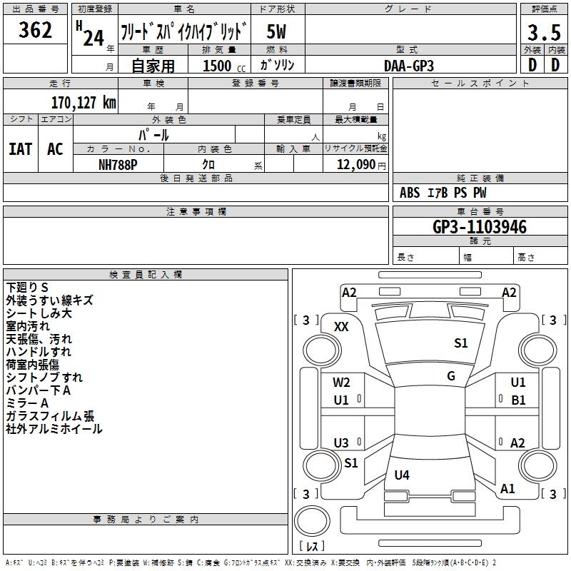 HONDA FREED SPIKE HYBRID - лот 362