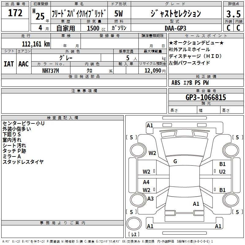 HONDA FREED SPIKE HYBRID - лот 172