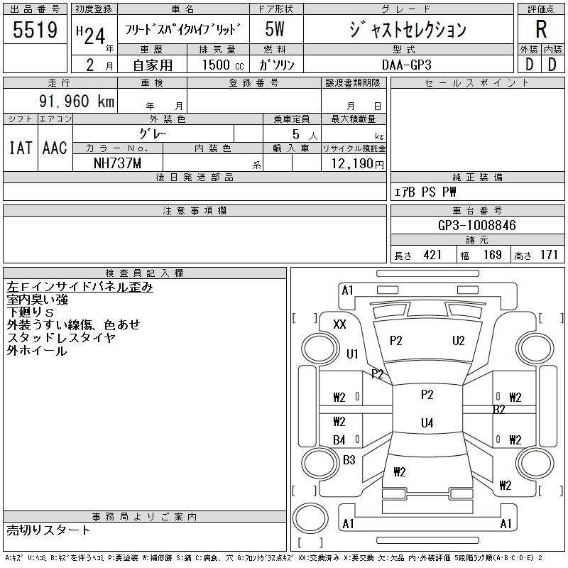 Все аукционы HONDA FREED SPIKE HYBRID