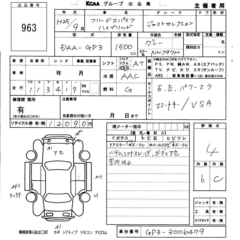 HONDA FREED SPIKE HYBRID - лот 963