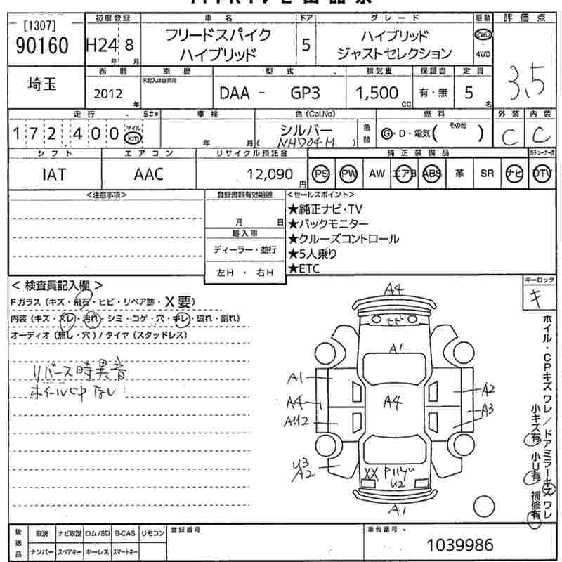 HONDA FREED SPIKE HYBRID - лот 90160