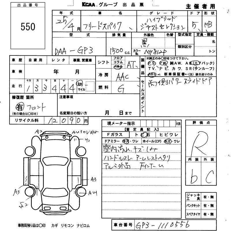 HONDA FREED SPIKE HYBRID - лот 550