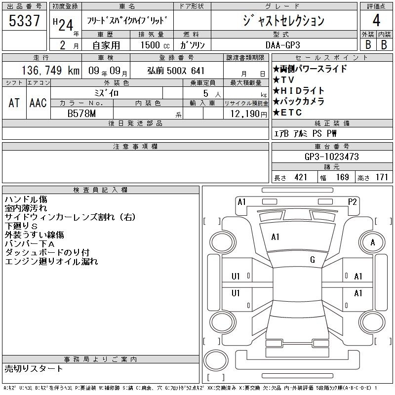 Все аукционы HONDA FREED SPIKE HYBRID