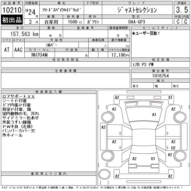 Все аукционы HONDA FREED SPIKE HYBRID