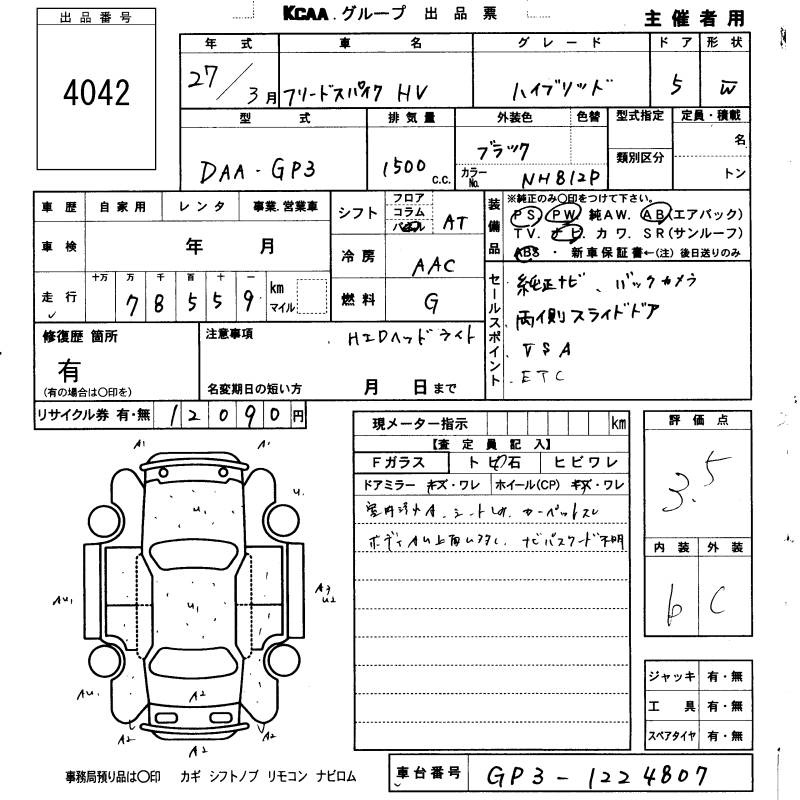 HONDA FREED SPIKE HYBRID - лот 4042