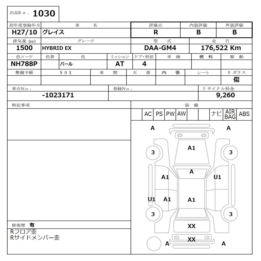 HONDA GRACE - лот 1030