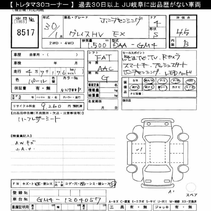 HONDA GRACE hybrid EX Honda ..... - лот 8517