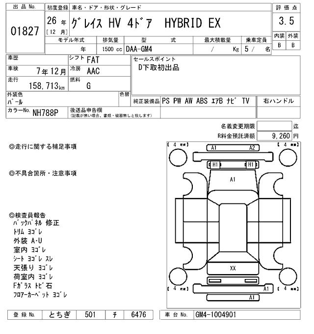HONDA GRACE HYBRID EX - лот 1827