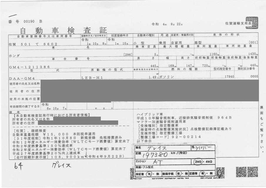 HONDA GRACE - лот 64