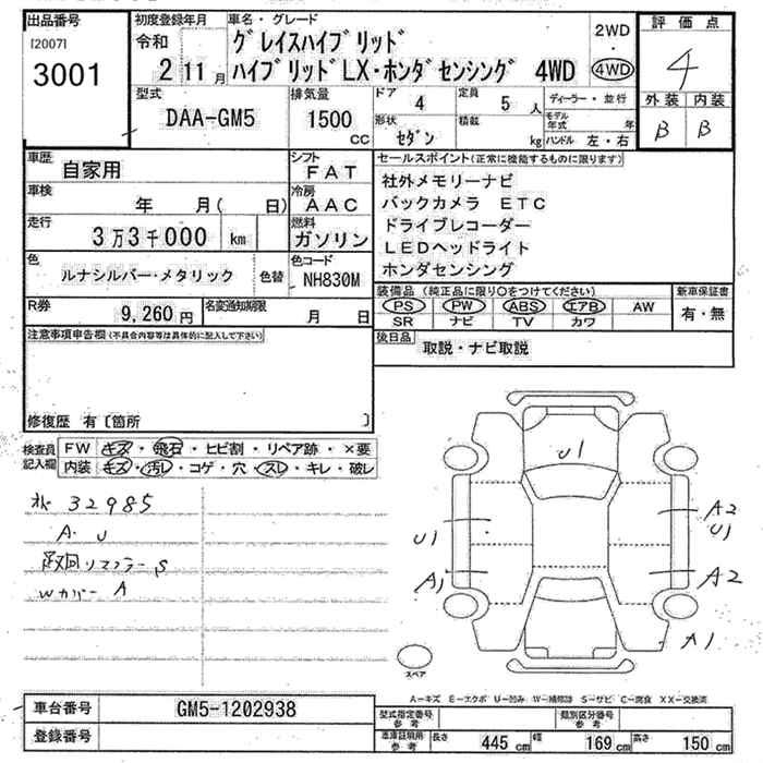 HONDA GRACE - лот 3001