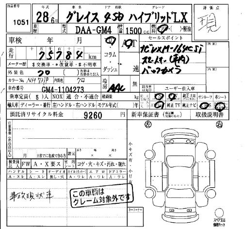 HONDA GRACE - лот 1051