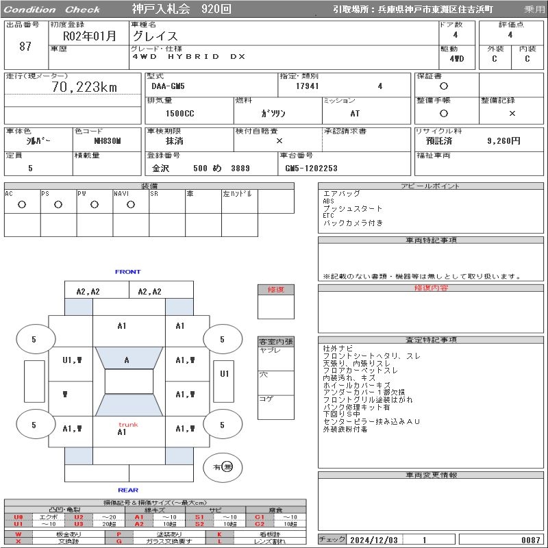 HONDA GRACE - лот 87